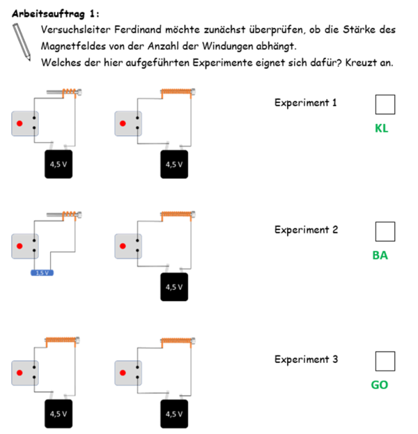 Mit diesem Modul sollen die Schülerinnen und Schülern untersuchen, welchen Einfluss die Windungszahl und die Spannungsquelle auf die Stärke des Magnetfeldes haben. Sie planen ihren Versuch variablenkontrolliert und beurteilen die Ergebnisse.